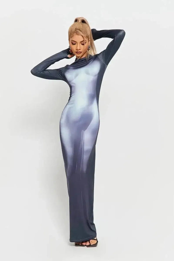 3D Körperdruck Super Langarm Body Robe Partykleid