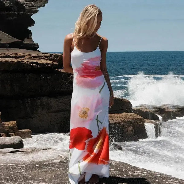 Bedrucktes Neckholder-Maxikleid – Sommer-Strandparty-Kleidung