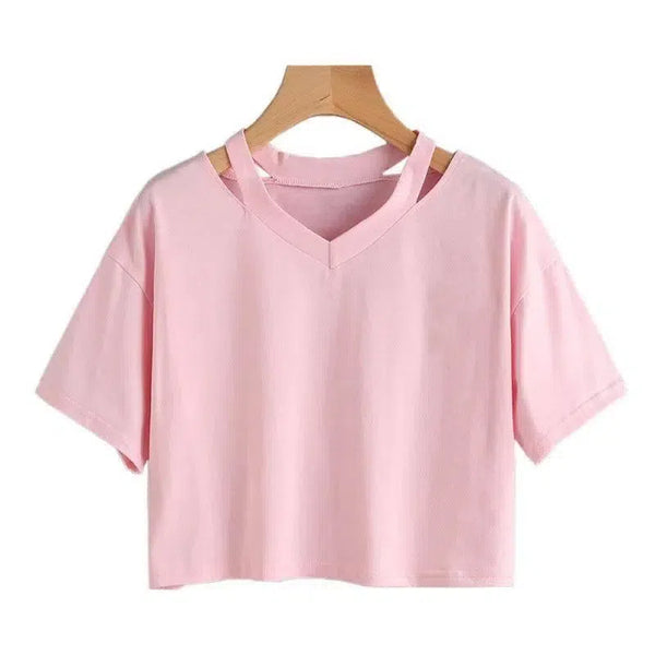 Crop-T-Shirt mit Cartoon-Stichmuster