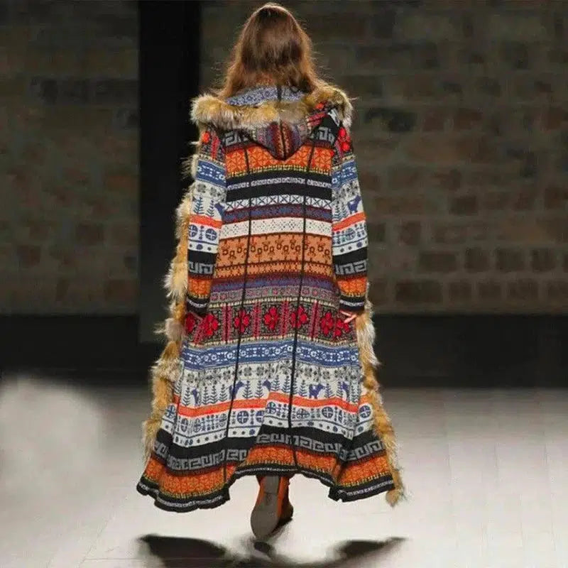 Echter Leopardenfellkragen bedruckt Langarm Damen Lang