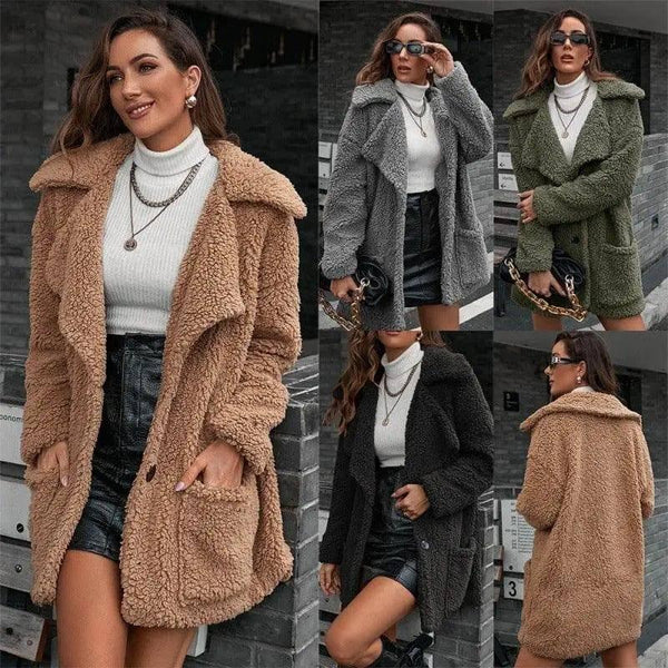 Einreihige Bubble Fleece Jacke Lose Revers Lammfell