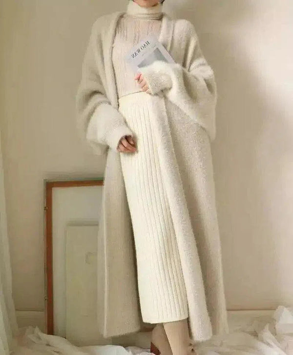 Lange Strickjacke mit Rollkragenpullover für Damen