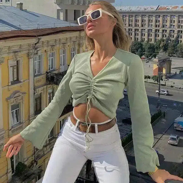 - Weiche Rippenstruktur: Umarme den Komfort mit dem weichen Rippenstrick-Material des Tops, das ein gemütliches und dennoch leichtes Gefühl bietet, perfekt für das Übergangswetter.
