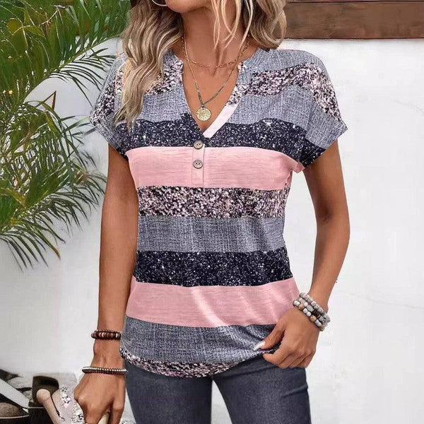 Europäischer und amerikanischer Sommer-Kurzarm, gestreift, V-Ausschnitt, 3D