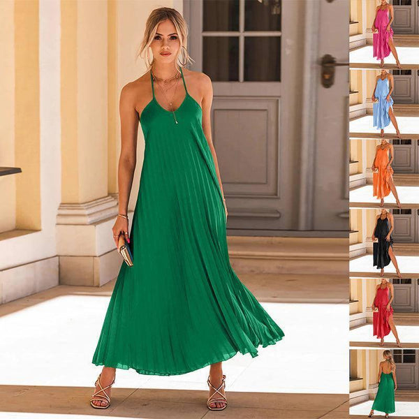 Mode A-Linie Plissee-Träger Langes Kleid Sommer Casual