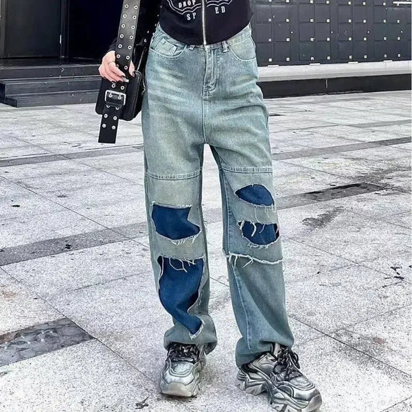 Gerade Damenhosen Ripped Schlankheitsnähte Jeans