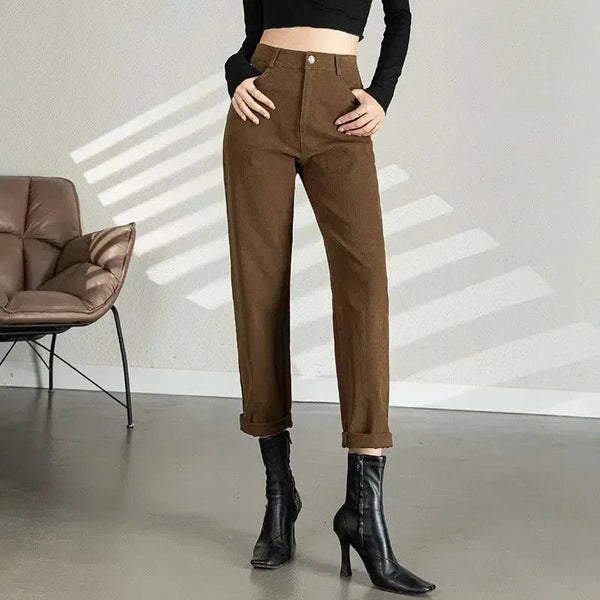 Women's High Waist Nine Minute Straight Turnip Röhrenhosen