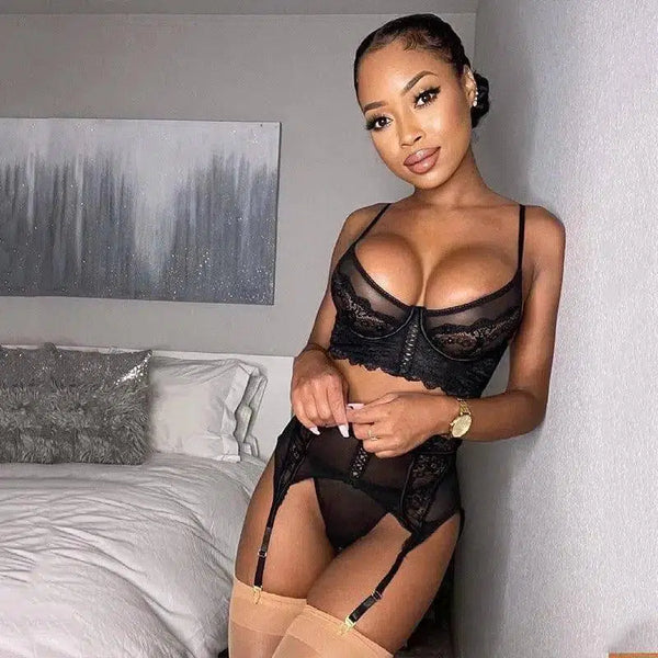 Women's Lace Wimper Nähen Sling Dessous Dreiteiler