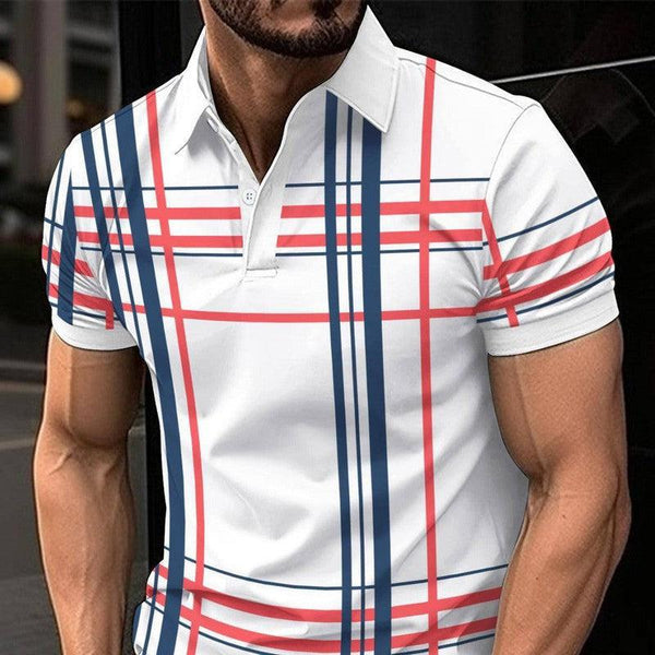 Herren-Sporthemd mit bedruckten Reversknöpfen und kurzen Ärmeln, Marineblau / 3XL