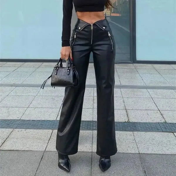 High Waist Straight Loose Wide Leg Casual Pants Leder