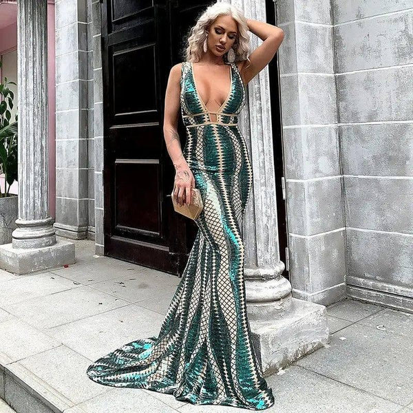 Produktbeschreibung: Suspender Long Tail Irregular Striped Evening Dress