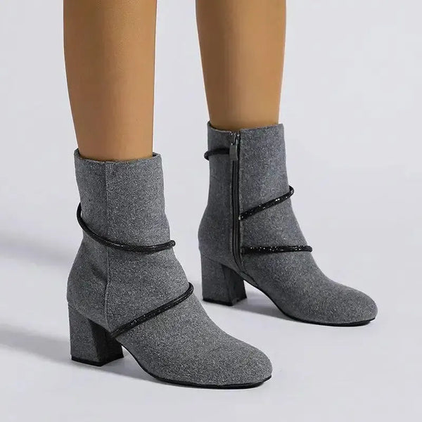 Chunky Mid Heel Stiefel mit Strass Kette Design Schuhe für