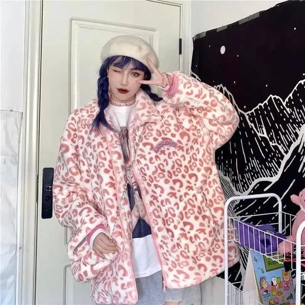 Koreanische Version des rosa Lammwollmantels mit lockerer Polsterung