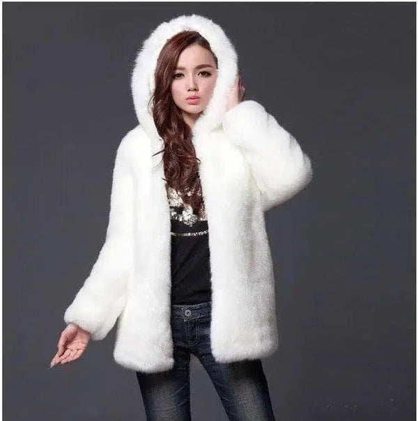 Kunstpelz Damenmantel mit Kapuze mittellanger Mantel