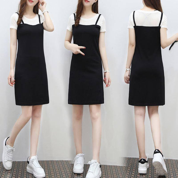 Kurze Ärmel Mitte lange gefälschte zwei Stück Strapskleid Sommer