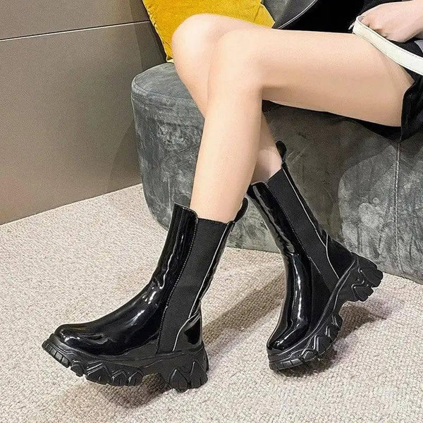 Kurze Stiefel Frauen Runder Kopf Schwammkuchen Plattform