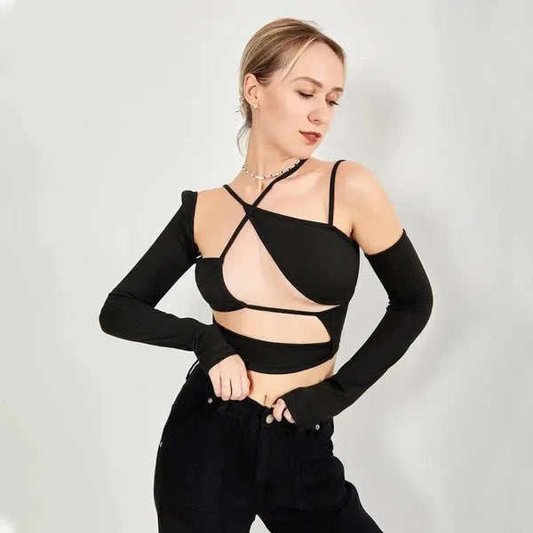 Langärmeliges Top mit asymmetrischem Ausschnitt