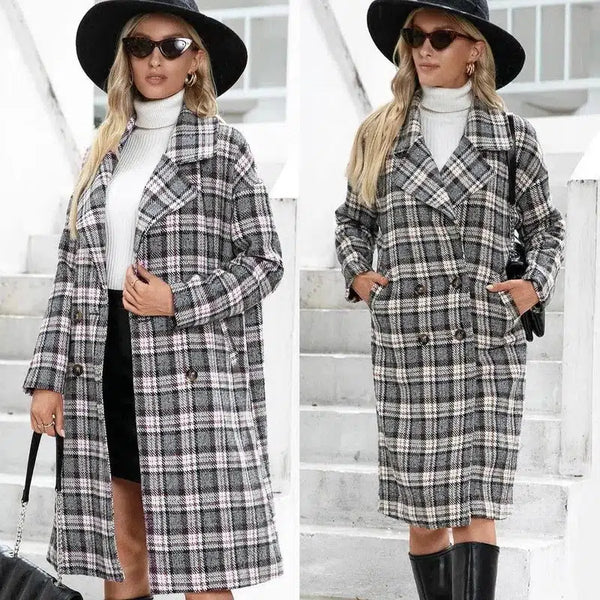 Langer doppelreihiger Kaschmirmantel mit Anzugkragen
