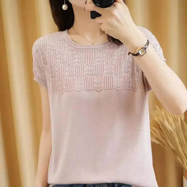 Kurzärmeliges Damen-Strick-Top mit strukturiertem Design
