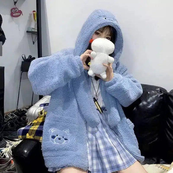 Bär Lammwollmantel Frauen Winter Plüsch Lose Plüschohren