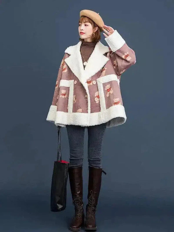 Fleecegefütterter Winter-Teddy-Mantel mit Taschen