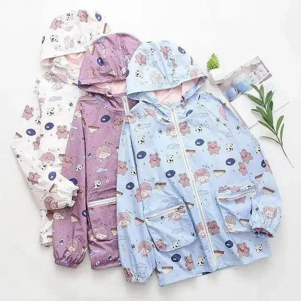Kinder-Regenmantel mit Kapuze und Cartoon-Print
