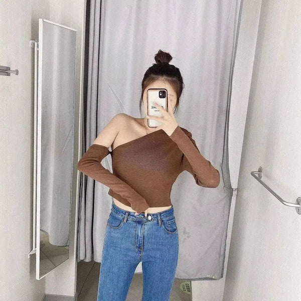 Asymmetrisches langärmeliges Crop-Top