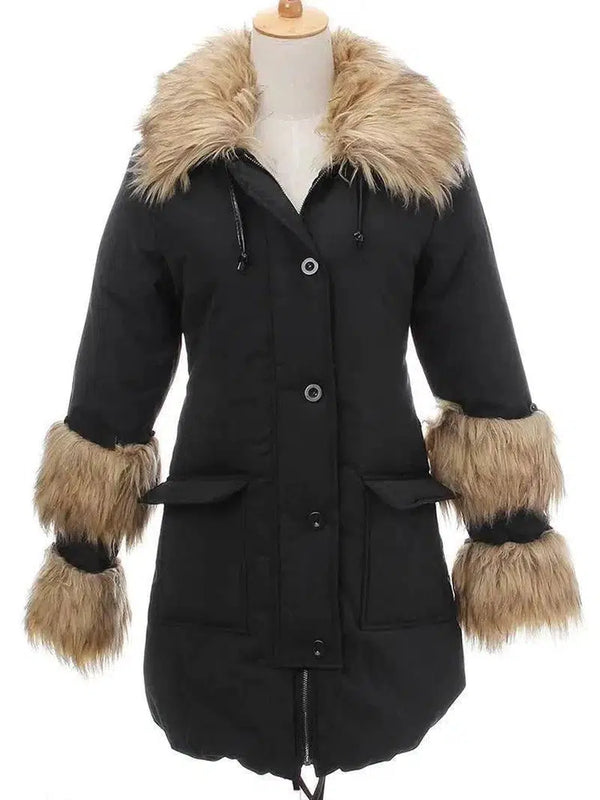 - Ausschnitt: Plüsch-Kunstfell-Kapuze