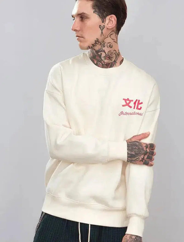 Pullover mit Rundhalsausschnitt und chinesischen Schriftzeichen