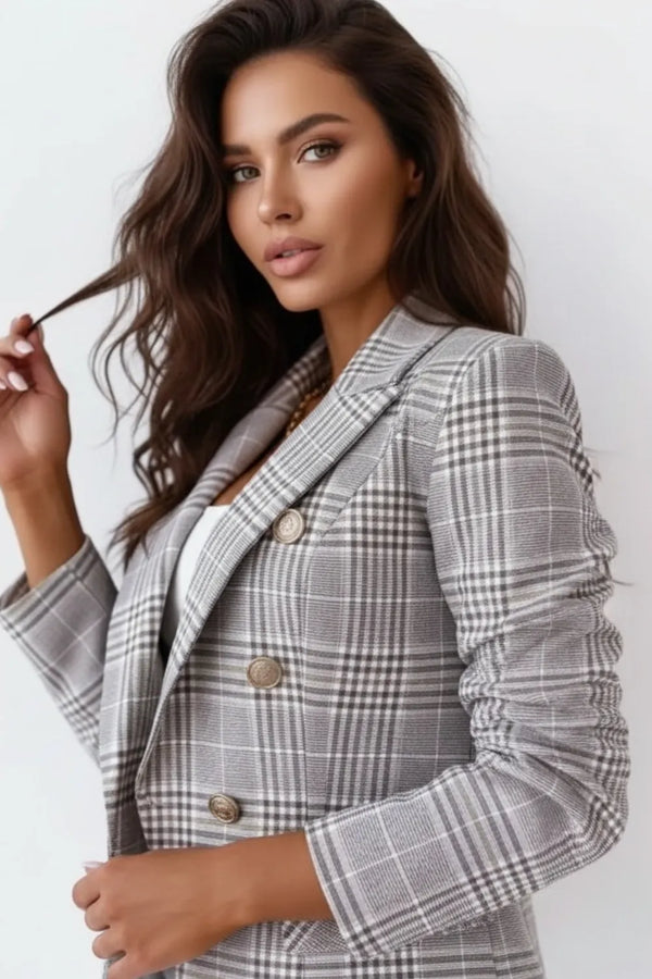 Damen Herbst Top Lose Langarm Plaid Blazer