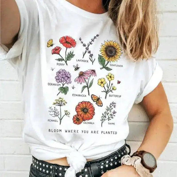 Inspirierendes Zitat mit Blumendruck T-Shirt