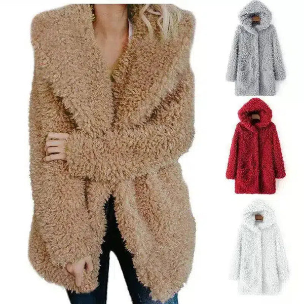 Flauschiger Wintermantel mit Kapuze für Frauen