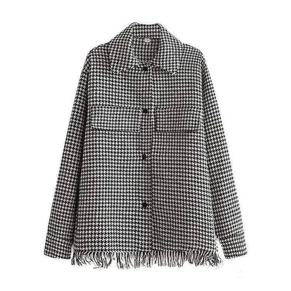 - Design Detail: Hahnentrittmuster mit Fransensaum