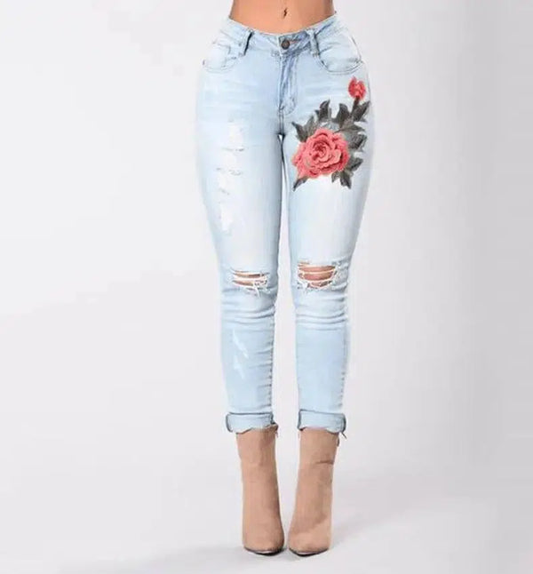 Fashion Hole Bestickte Hochelastische Jeans Damenhosen