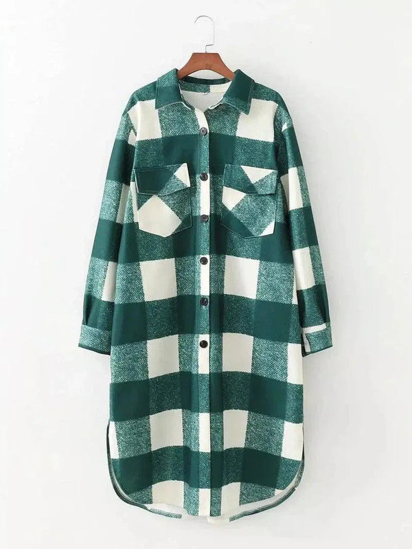 - Design Details: Fettes grün-weißes Karomuster, zwei Brusttaschen mit Klappen, Knopfverschluss vorne