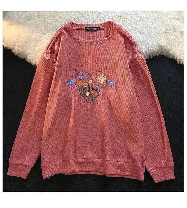 Bestickter Langarmpullover mit Rundhalsausschnitt