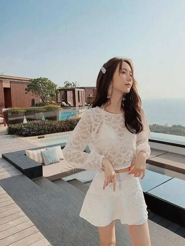 Dreiteiliger Damen-Badeanzug aus Spitze