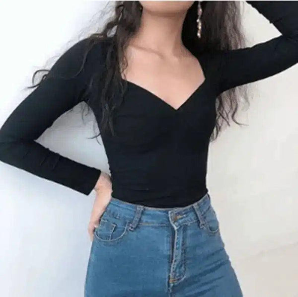 Langärmeliges Top mit V-Ausschnitt für Frauen