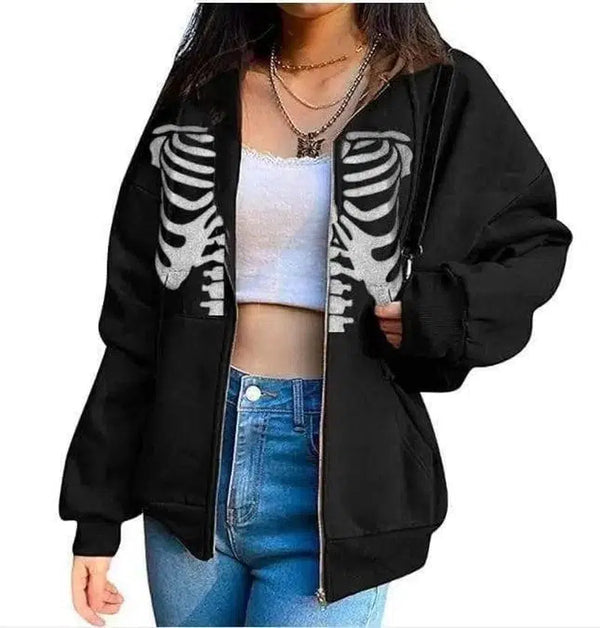 Women's Streetwear Kapuzenjacke Skelett Druck Mantel Lose