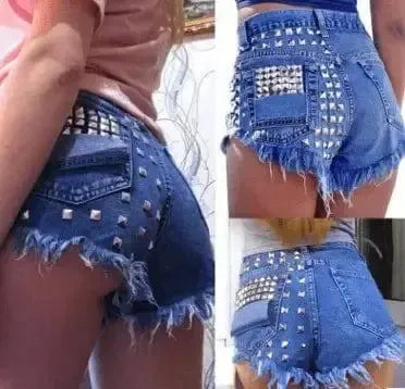 Frauen zerrissene Jeans Baggy Shorts Nieten Hot Pants