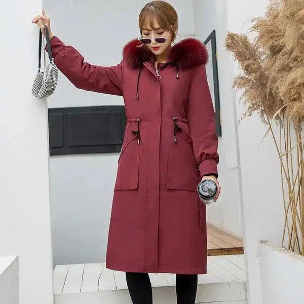 Damen-Wintermantel mit Pelzkapuzenbesatz