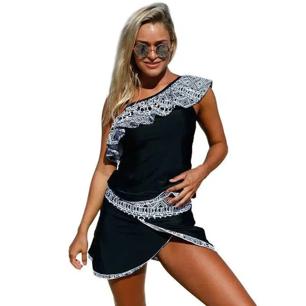 Geometrischer Print Geraffter Strandrock Geteilter Badeanzug