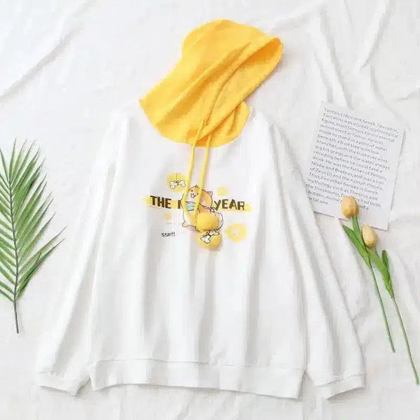 Dieser entzückende Kapuzenpullover verbindet Komfort mit skurrilem Stil. Er besteht aus einer weichen Baumwollmischung und hat eine leuchtend gelbe Kapuze, die alle Blicke auf sich zieht. Der einzigartige Cartoon-Print ist perfekt für alle, die ihre verspielte Persönlichkeit gerne durch ihre Kleidung ausdrücken. Die lockere Passform und die langen Ärmel machen ihn zu einer ausgezeichneten Wahl für den Alltag, während die gerippten Bündchen und der Saum einen Hauch von klassischem Hoodie-Style verleihen. Leicht zu pflegen und vielseitig einsetzbar