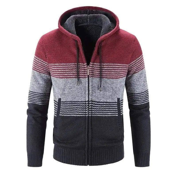 Männer Kapuzenmantel Streifen Strickjacke Männer Dicke Reißverschluss Wolle