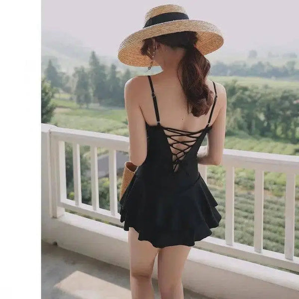 - Design: Eleganter einteiliger Badeanzug mit einem femininen Rock-Overlay