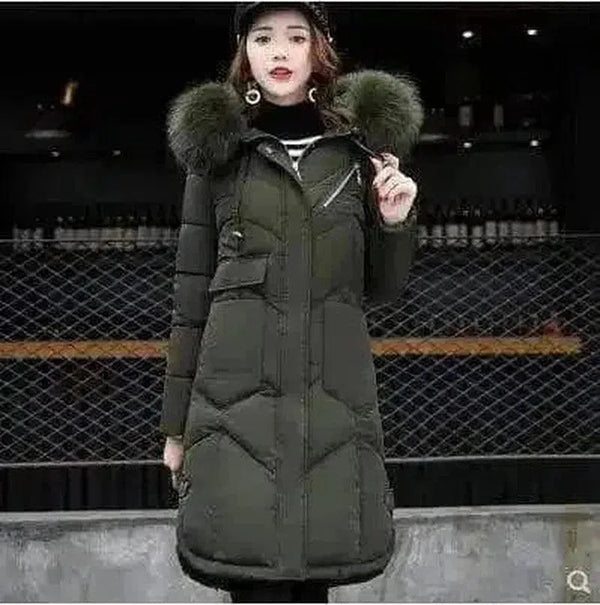Lange Winter-Pufferjacke mit Kapuze und Pelzbesatz