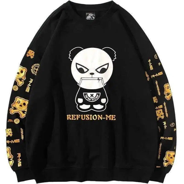 Hot Stamped Rundhalsausschnitt Panda Print Sweatshirt