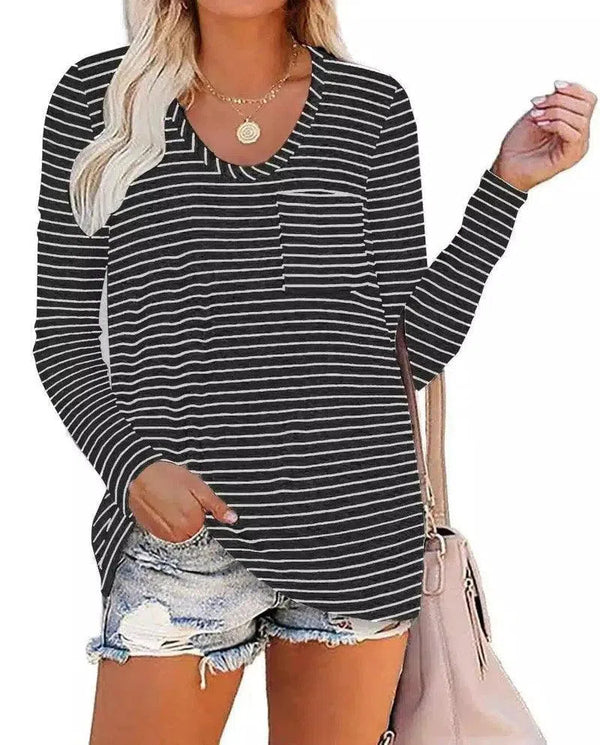 Gestreiftes Langarm-T-Shirt mit Tasche für Frauen
