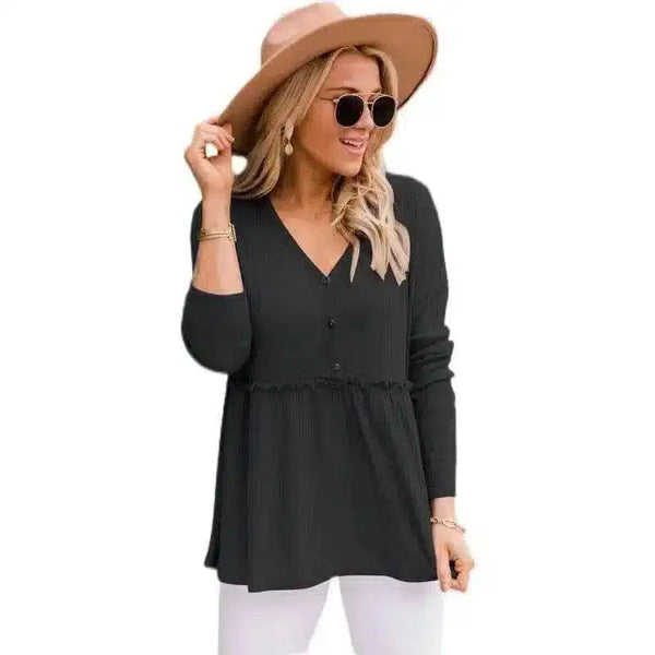 Tunika-Top mit V-Ausschnitt und Knopfleiste für Damen