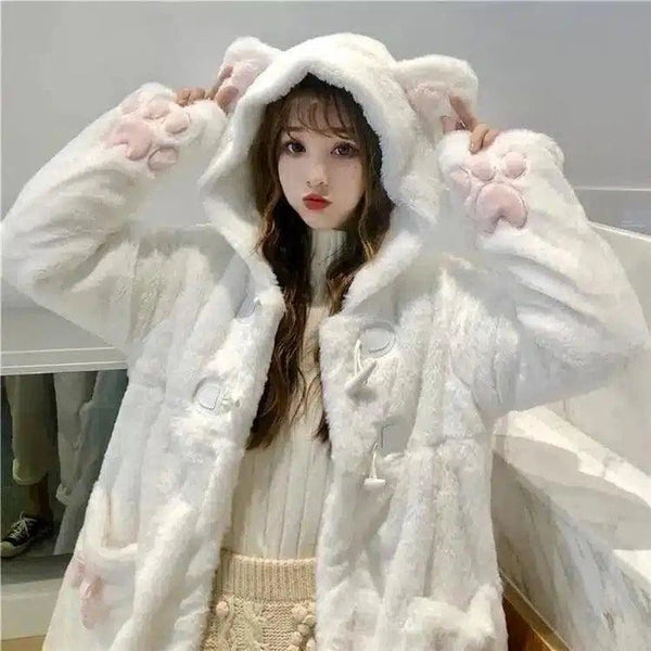 Niedliche Katzenohren mit Kapuze Baumwolle wattierter Mantel Frauen